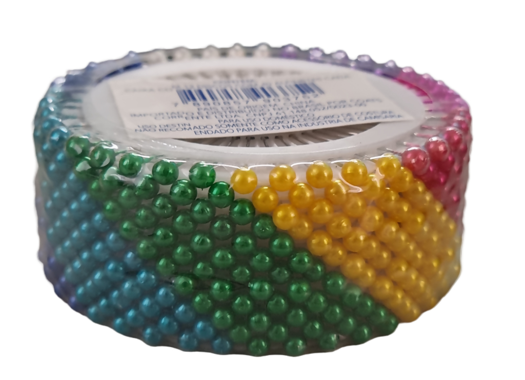 Alfinetes com cabeça de plástico colorida para melhor visualização.