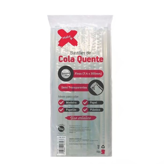 O bastão de cola quente fina Make+ é ideal para artesanato, reparos, trabalhos escolares e uso profissional. Possui fácil aplicação, proporcionando colagem rápida e duradoura em diversos materiais como papel, tecido, madeira, plástico, EVA e muito mais. A cor semi transparente garante bom custo beneficio.