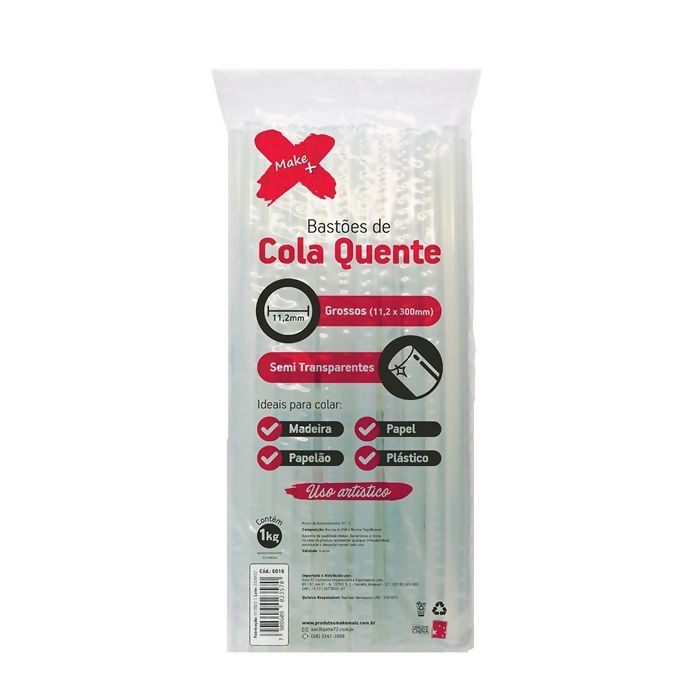 O bastão de cola quente grossa Make+ é indicado para trabalhos manuais, artesanato, reparos e uso profissional. Proporciona colagem rápida, prática e de alta resistência em diferentes materiais como papel, tecido, madeira, plástico e muito mais. A cor semi transparente garante bom custo beneficio.
