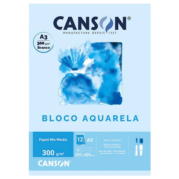 Informações Bloco Aquarela Universitario 12Fls A3 300Gm2 Canson