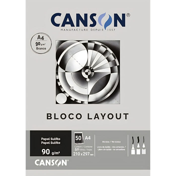 O bloco layout canson possui um papel sulfite liso e branco, de gramatura 90 g/m², para gráficos, desenhos geométricos, projetos arquitetônicos ou de engenharia. sugestão de uso: desenhos técnicos a lápis, nanquim, canetas porosas, penas tubulares e marcadores.