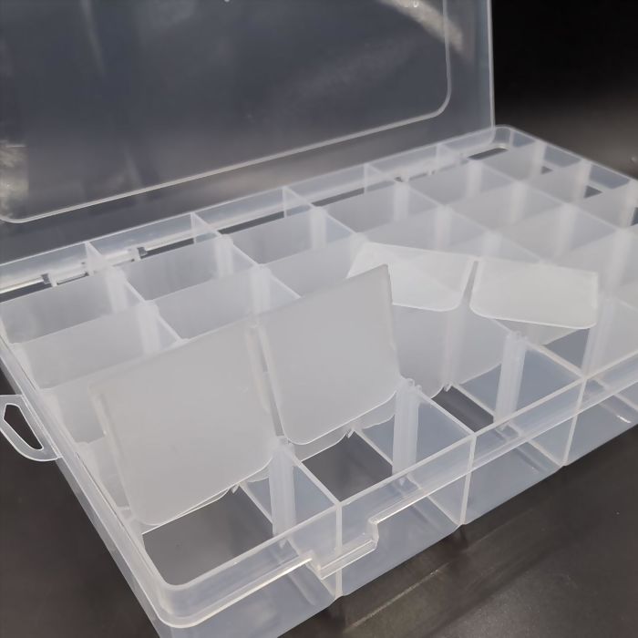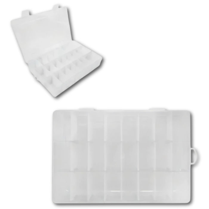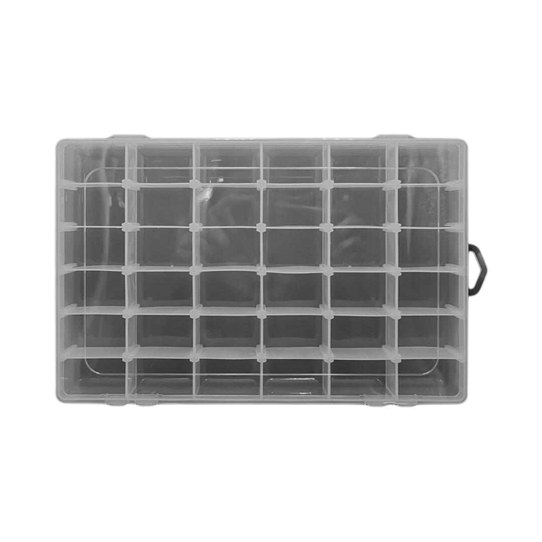 A caixa organizadora UT.907 é prática, resistente e ideal para manter seus acessórios e materiais sempre em ordem. Possui 36 divisões internas que facilitam a separação e identificação de pequenos objetos como bijuterias, peças de costura, parafusos, miçangas, pedrarias, aviamentos e muito mais. Seu design transparente permite visualizar facilmente o conteúdo.