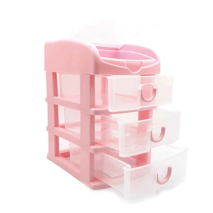 Organizador com 3 gavetas e bandeja superior, ideal para organizar itens de escritório, maquiagem, artesanato e muito mais.