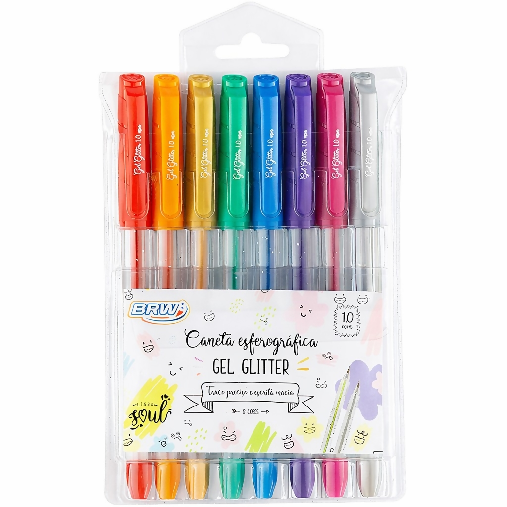 Descrição Caneta gel Soul 1.0mm 8 Cores Glitter BRW