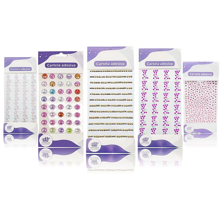 A Cartela Adesiva de Strass Princess é ideal para dar brilho e sofisticação a trabalhos de decoração e customização. Prática e fácil de aplicar, possui adesivo no verso, garantindo fixação rápida e acabamento elegante.
