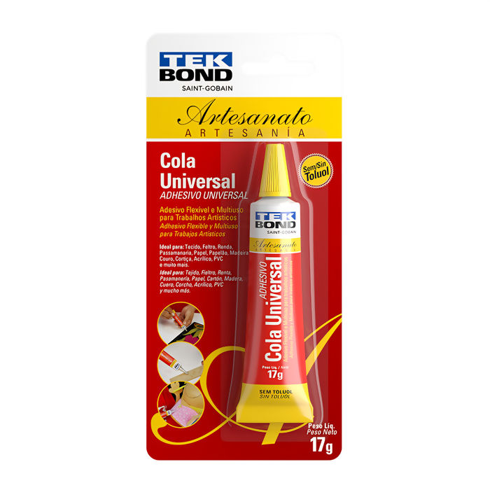 É indicado para união de vários substratos (tecido, madeira balsa, “eucatex”, MDF, cortiça, papel, papelão, papel cartão, acrílico, couro, PVC, madeira eucalipto, pinus, renda e outros). É super resistente à água e óleos convencionais. Proporciona montagens e colagens de alto desempenho com qualidade, oferecendo excelente resistência à desmontagem.