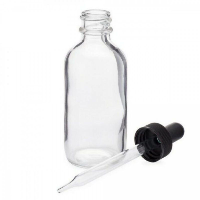 Frasco de vidro transparente com capacidade aproximada de 30 m.