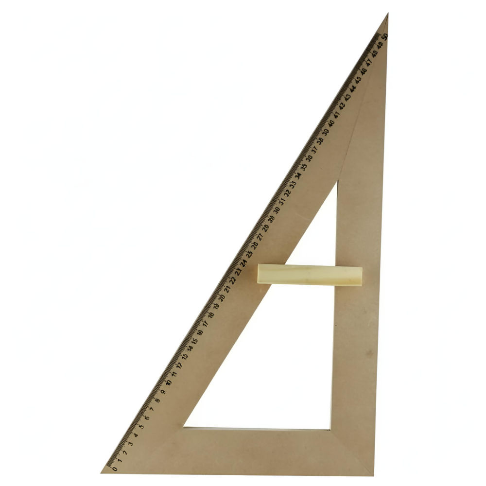 Esquadro de madeira de 60 graus ideal para quadros escolares sendo utilizado para desenhos e traços precisos.
