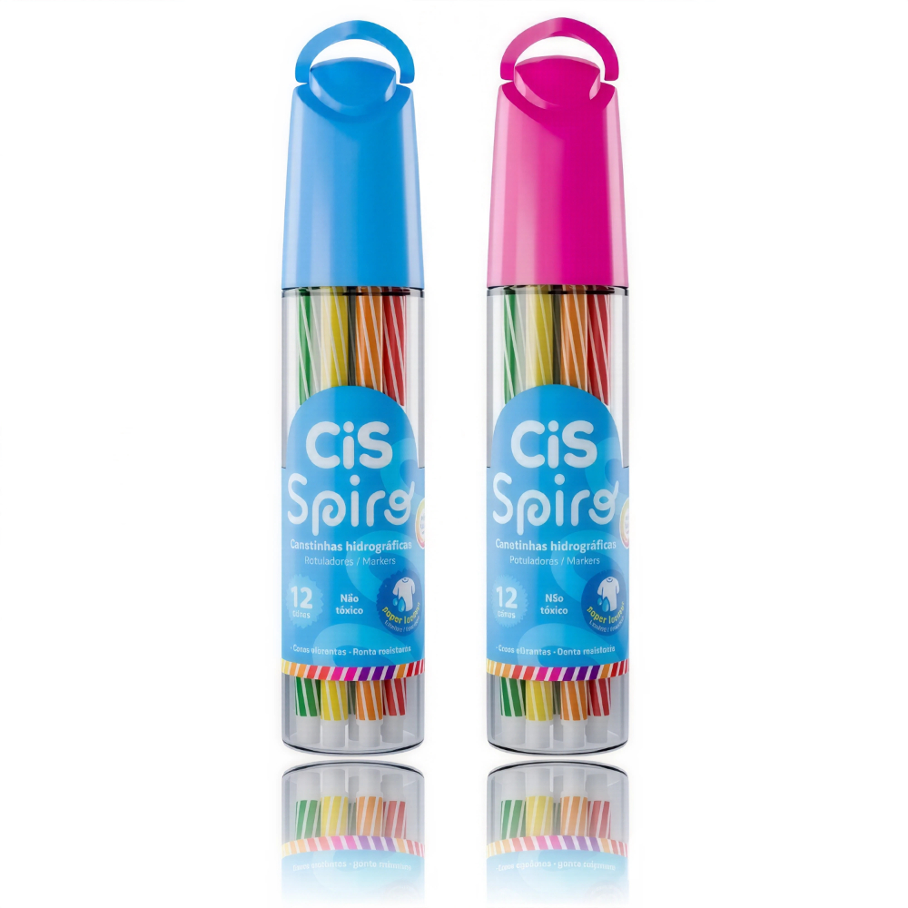 Estojo Caneta Hidrocor Canetinha Cis Spiro 12 Cores