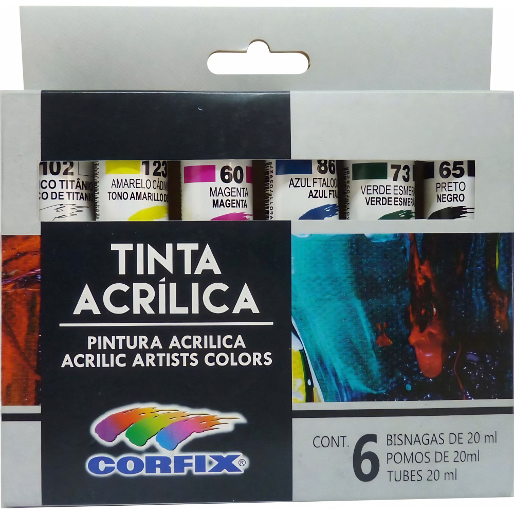 Informações Estojo de Tinta Acrílica c/6 Bisnagas 20ml Corfix