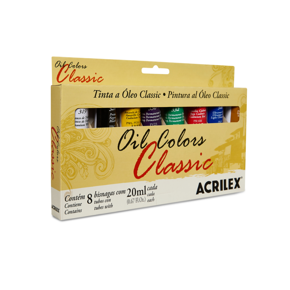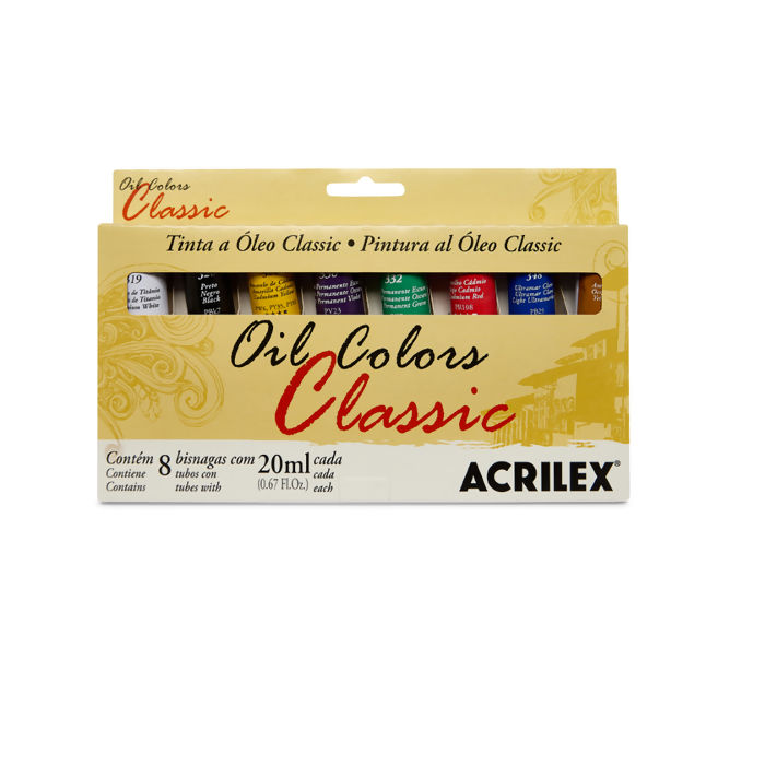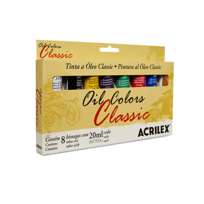 Descrição Estojo Tinta Óleo 8 Bisnagas 20ml Classic Colors Acrilex
