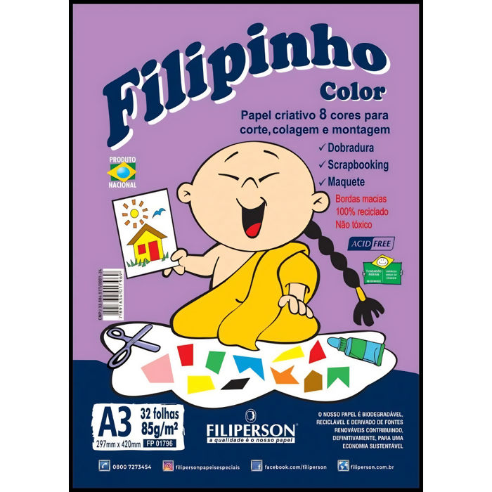 Informações Filipinho Escolar Criativo Color 8 cores A3 85G/M2 C/32 fls