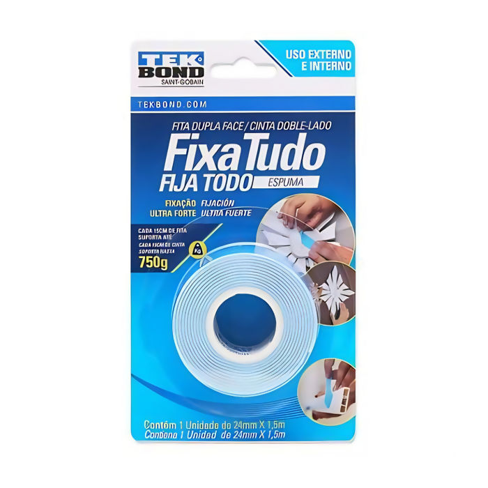 Informações Fita Dupla face Espuma Fixa Tudo 24mmx1,5m Tekbond