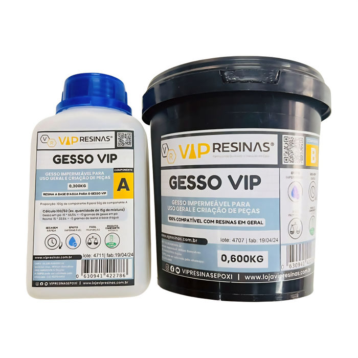 Informações Gesso VIP Impermeável Compativel C/Resina Epóxi Kit 900g Vip Resinas