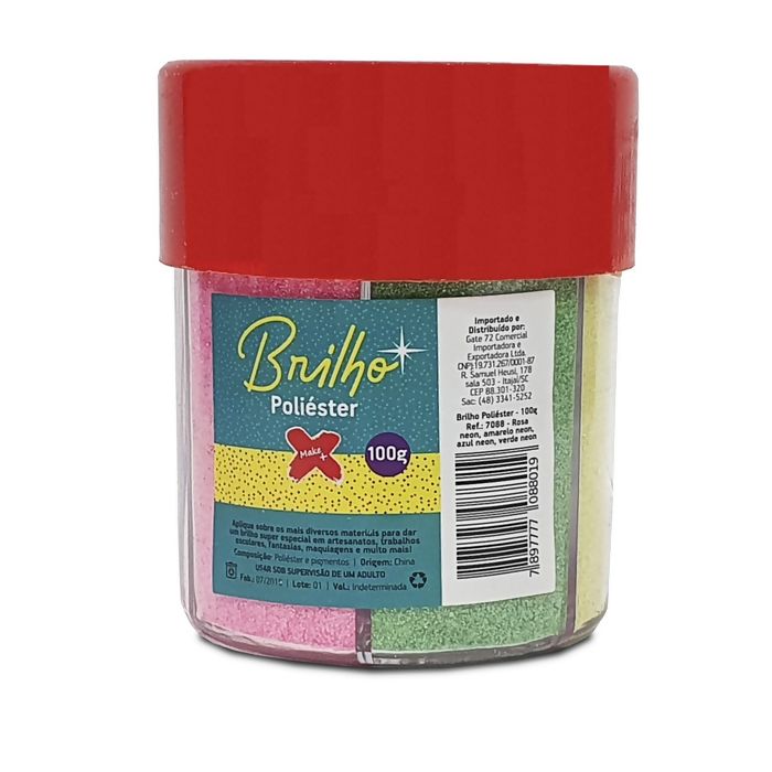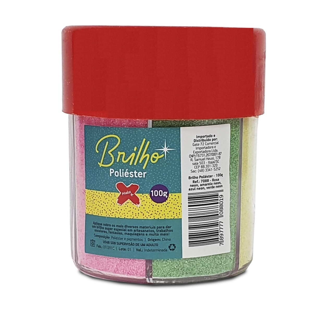 Informações Glitter 100gr Neon Rosa/Azul/Verde/Amarelo Make+