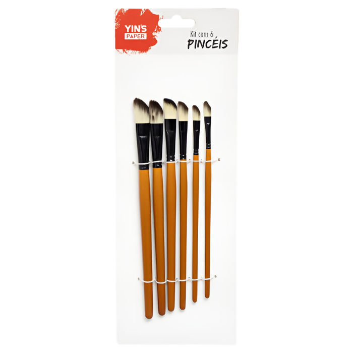 Descrição Kit 6 Pinceis Chanfrados De Madeira Yins Paper