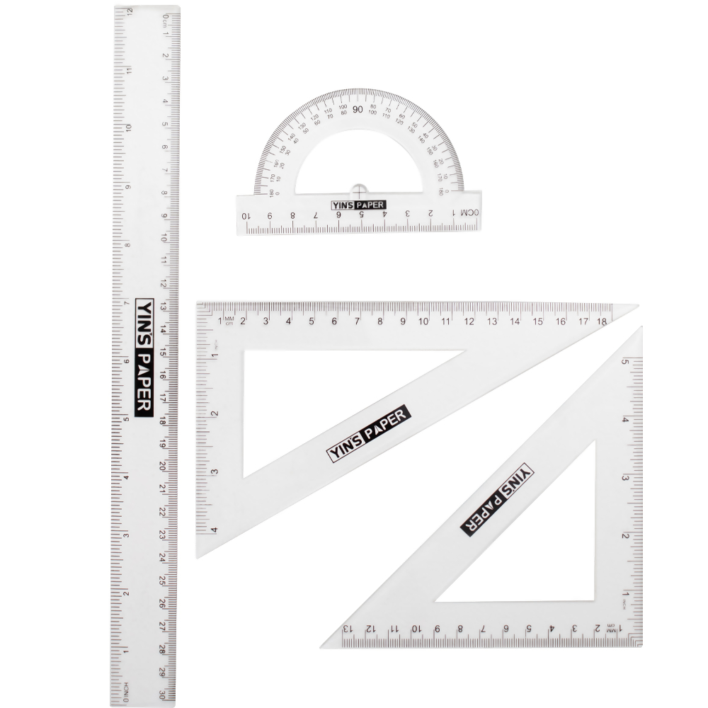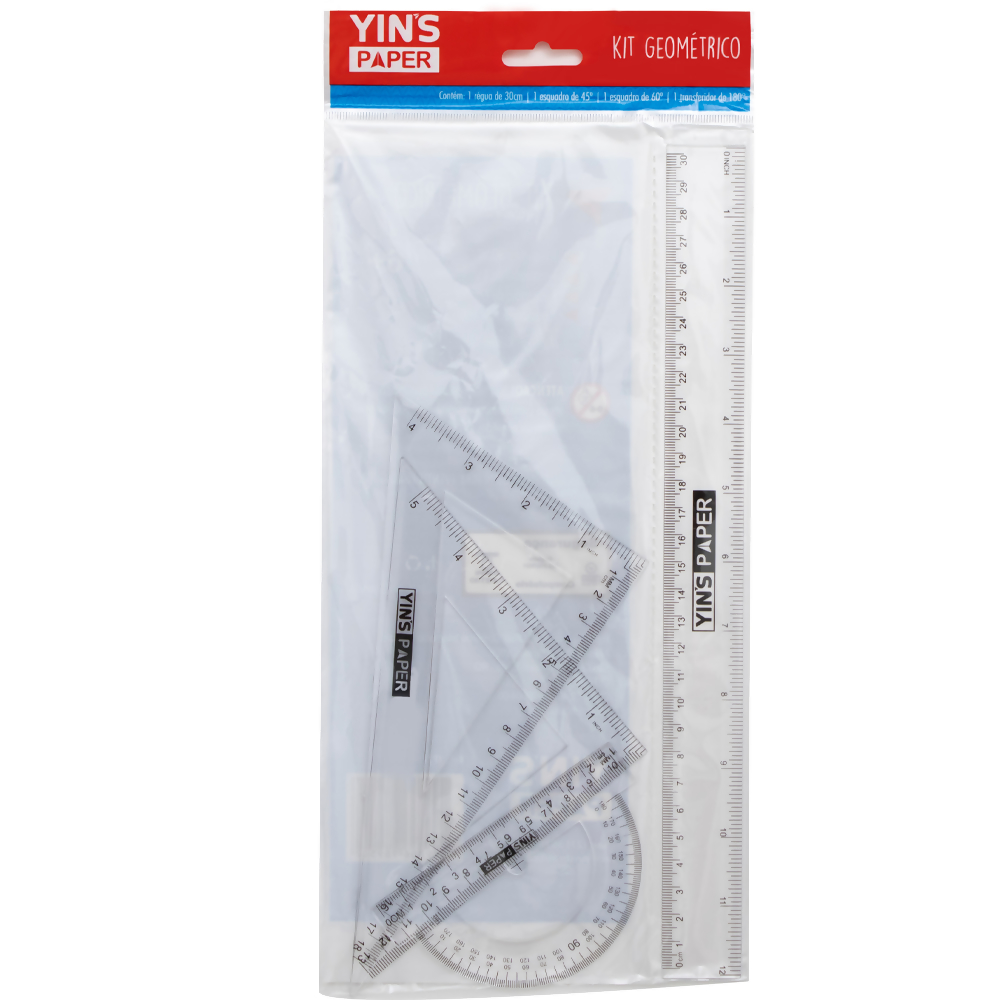 Kit Geometrico Regua 30cm/Esquadro 45/Esquadro 60/Transferidor 180 Yins Paper