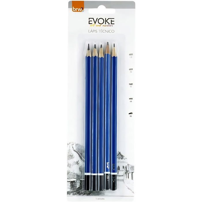 Kit Lápis Técnico Madeira c/ 5 un Hh/2B/4B/6B/8B Brw