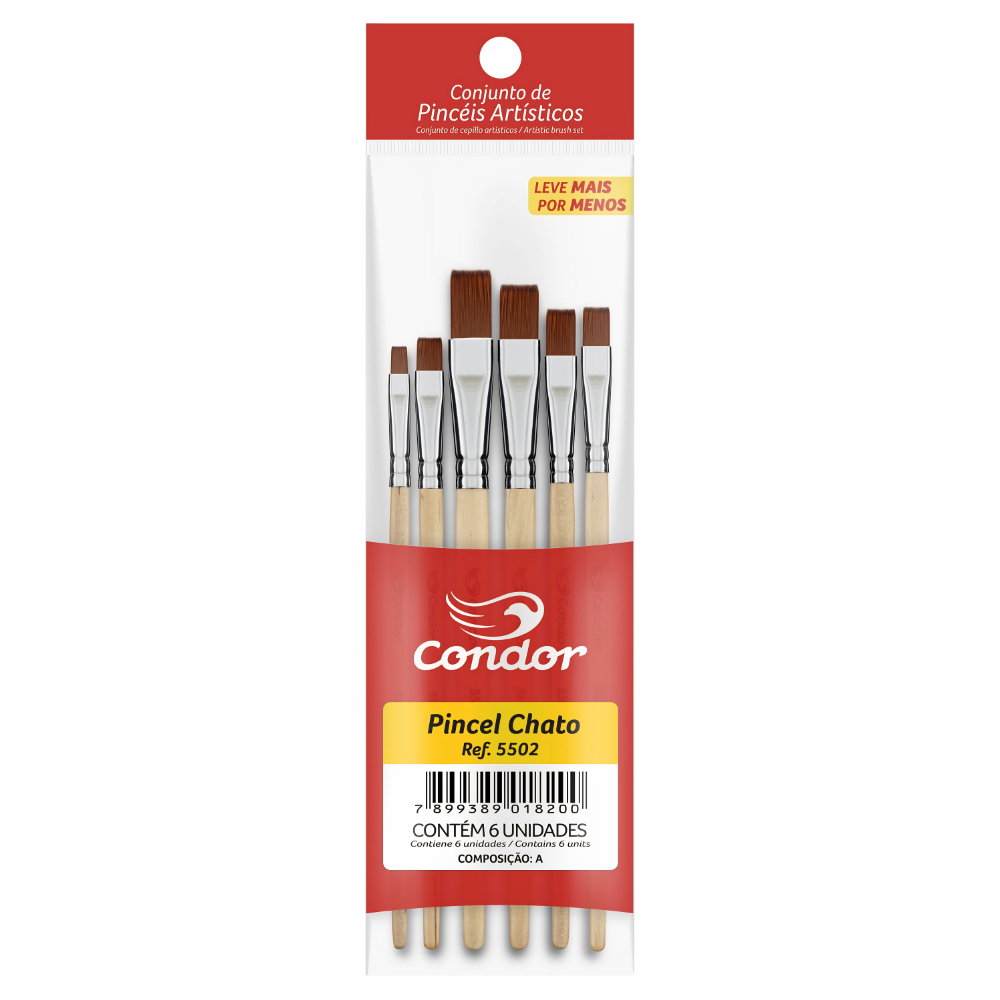 Kit Pincel Chatos Condor C/6 Pinceis 5502