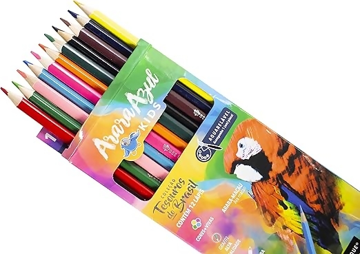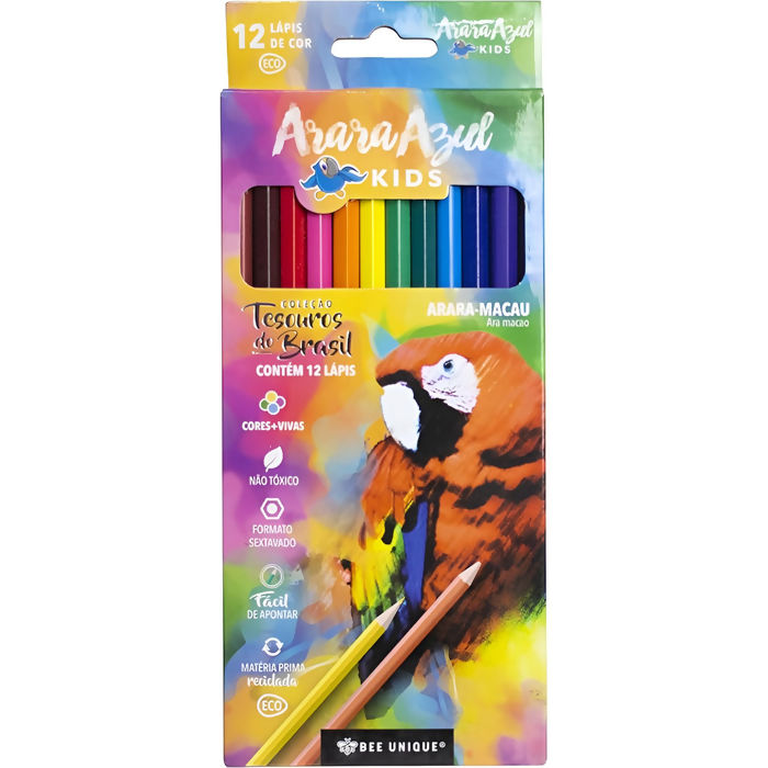Descrição Lápis de Cor 12 Cores Aquarelável Sextavado Arara Azul Kids Bee Unique