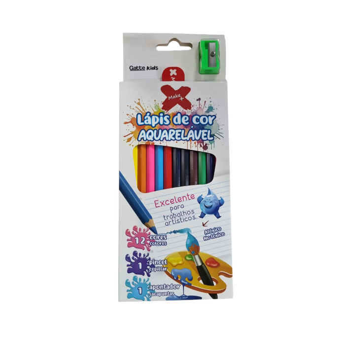 Lápis de cor Aquarelável 12 Cores com Apontador e Pincel Make+