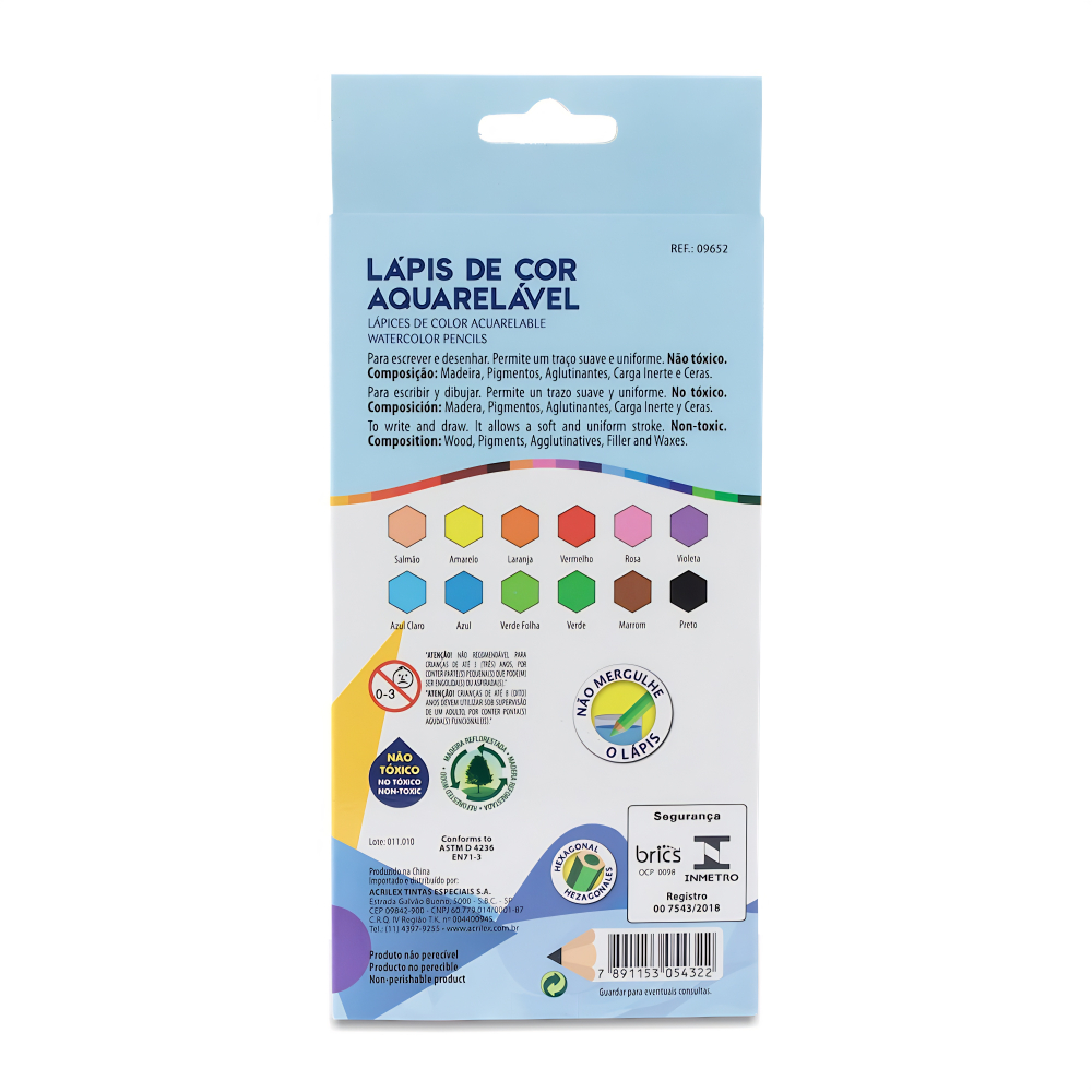Informações Lápis de Cor Aquarelável C/12 Cores Acrilex