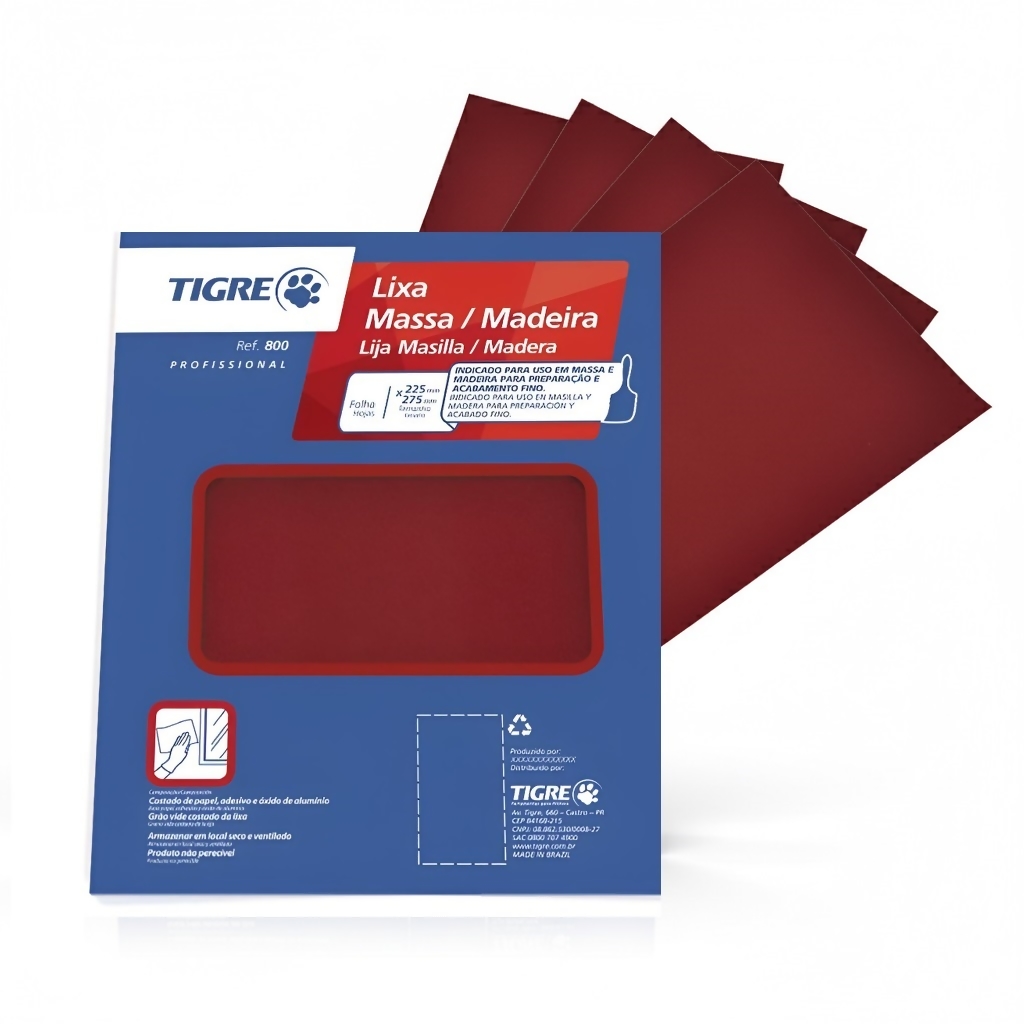 As Lixas Tigre Ref.800 são ideais para o preparo e acabamento de superfícies de massa corrida, madeira e outros materiais. Com folhas no tamanho 225x275mm, oferecem resistência, praticidade e ótimo desempenho em diferentes etapas do lixamento.