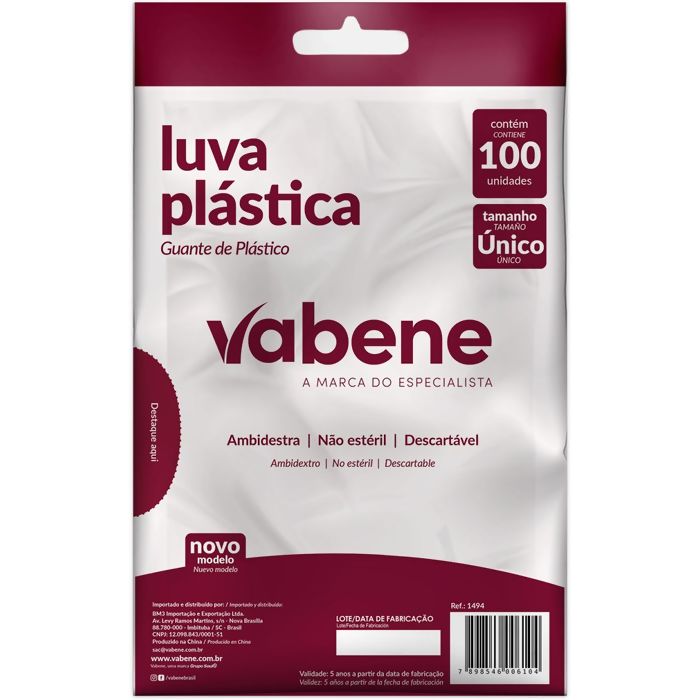 Descrição Luva Plastica Descartavel Tam Unico C/100 und Vabene