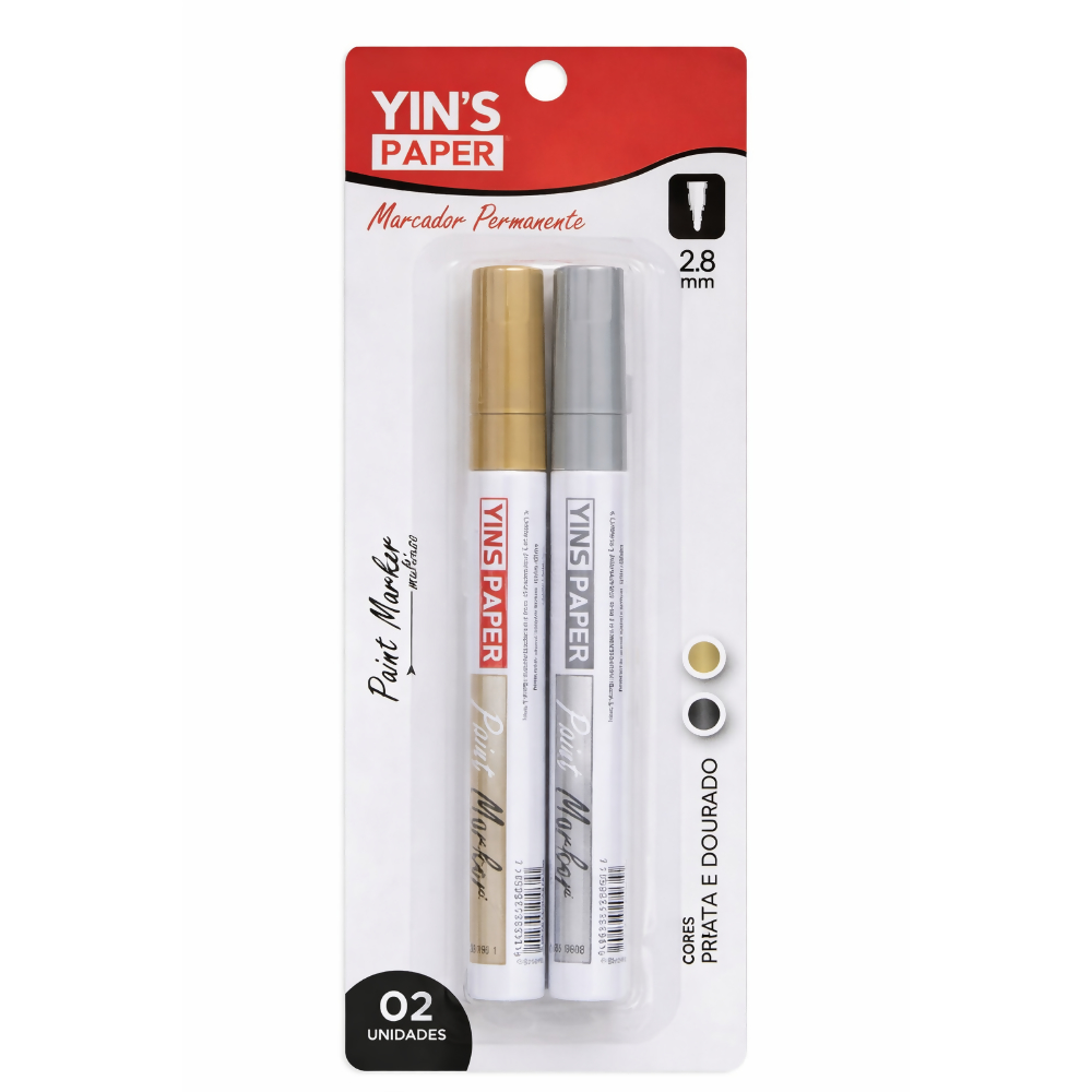 O Marcador Permanente Multiuso Prata e Dourado Yin’s Paper é ideal para quem busca destaque e acabamento diferenciado em seus projetos. Com cores metálicas intensas, permite escrita e marcação com excelente cobertura em diversas superfícies, sendo perfeito para artesanato, decoração, personalização e uso profissional.