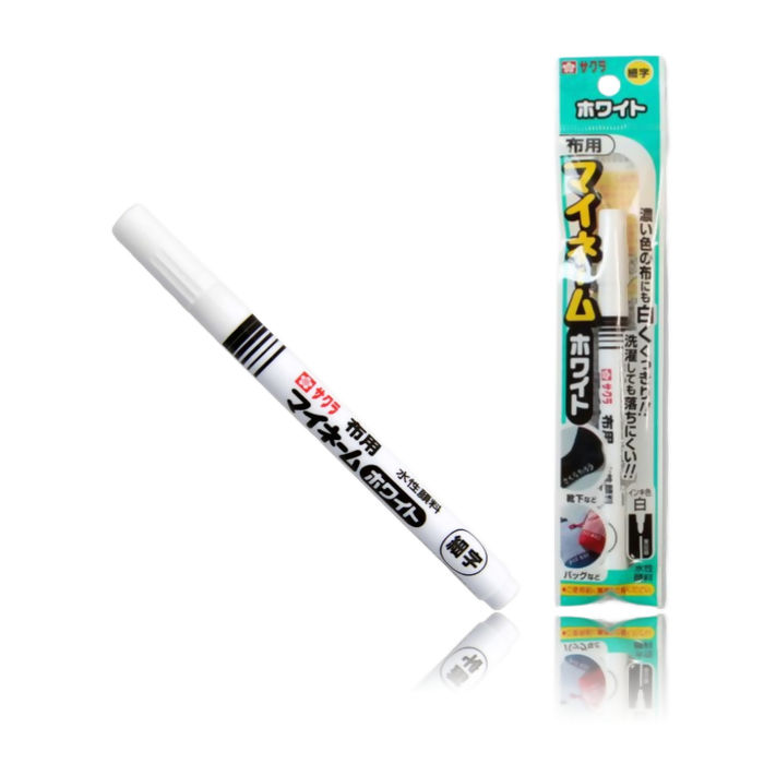 Tinta branca à base de pigmento, ideal para escrever sobre tecidos escuros sem borrar ou desbotar após lavagens.