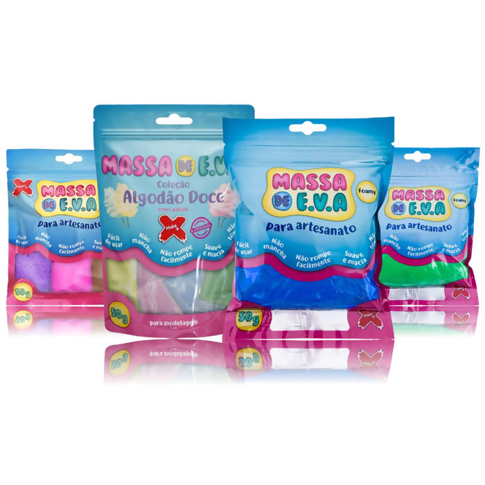 A Massinha de EVA Make+ é macia, leve e fácil de modelar, ideal para desenvolver a criatividade das crianças e criar peças artesanais. Disponível em diversas cores, não tóxica e segura, pode ser utilizada em trabalhos escolares, artesanato e atividades recreativas.