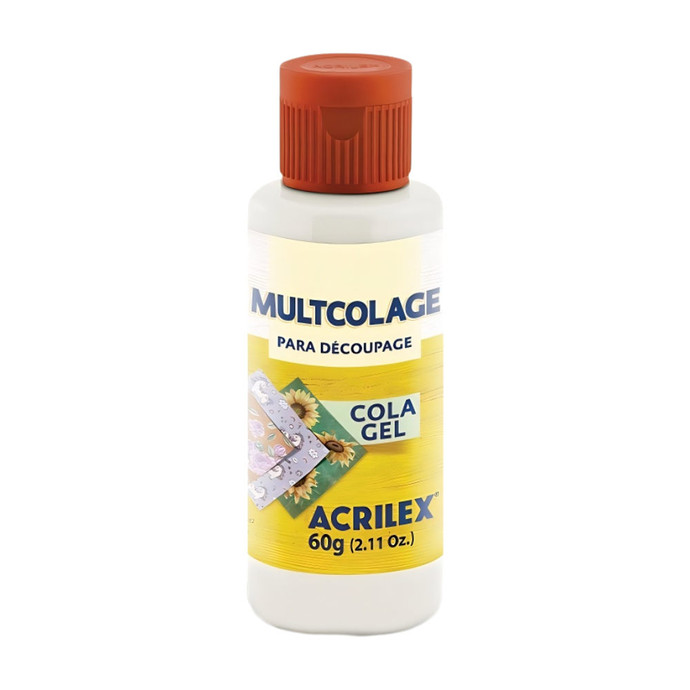 Cola gel para trabalhos de découpage sobre madeira, cerâmica, gesso, tela, isopor e cortiça.