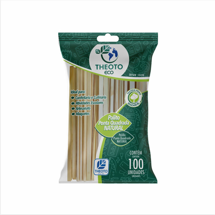 Informações Palito De Madeira Ponta Quadrada Natural C/100und Theoto
