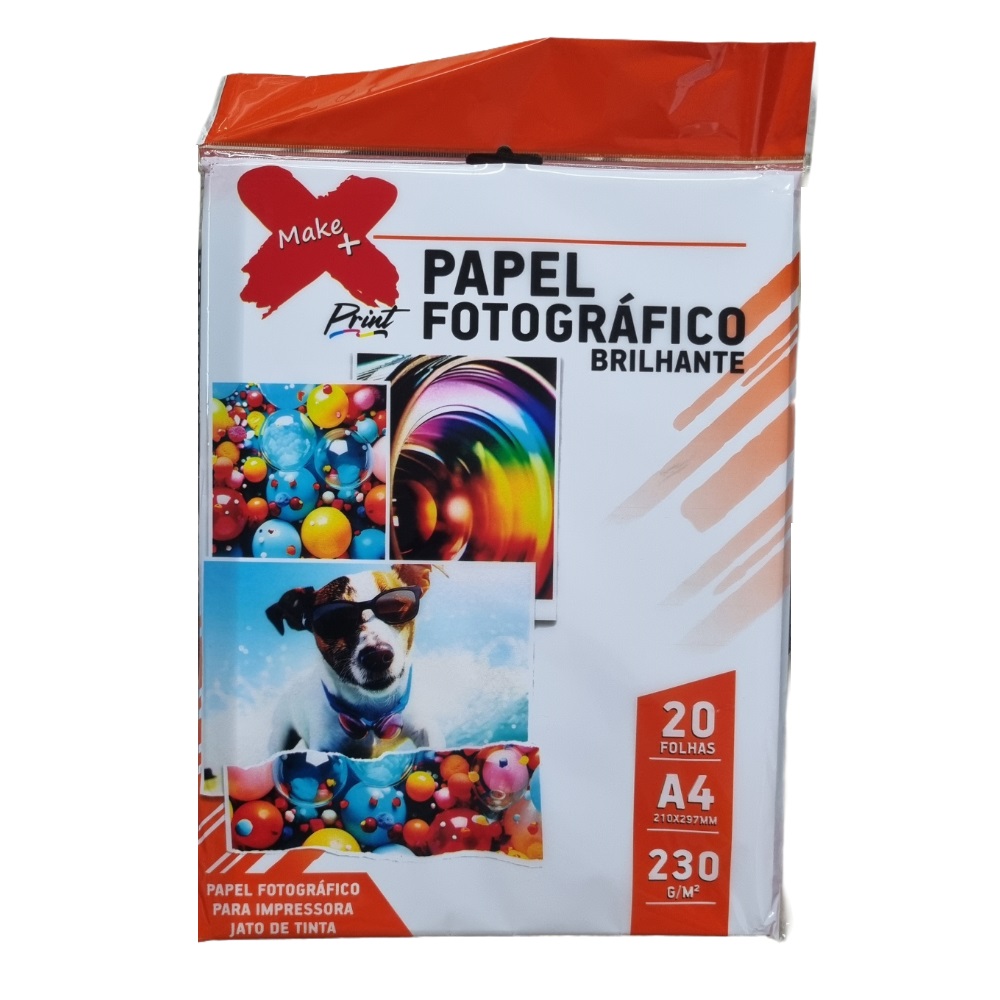 Papel A4 Fotográfico Brilhante 230g/m² C/20 folhas Make+
