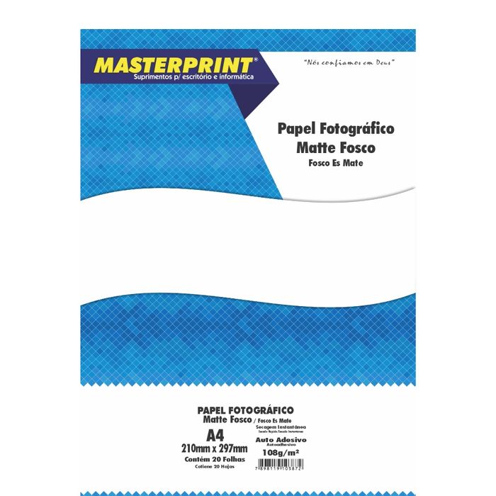 Papel Fotografico Inkjet A4 Matte Adesivo 108G C/20 folhas Masterprint