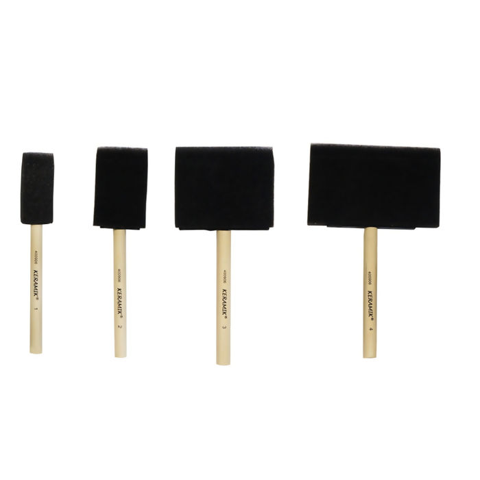 Pincel mousse retangular com cabo em madeira natural e ponta em espuma.