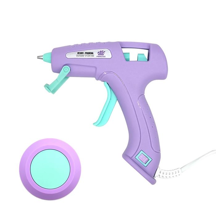 Pistola de Cola Quente Pequena UT.991 30W Bivolt Princess - Lilás/Verde