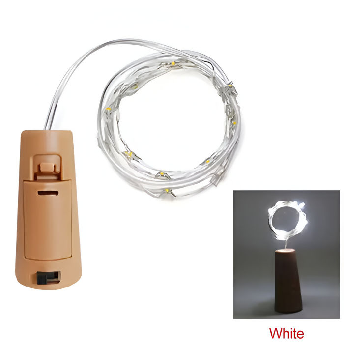 A rolha plástica com LED da Wei é perfeita para transformar garrafas em lindas luminárias decorativas. Com fio de 2 metros de comprimento e pequenas luzes LED na cor branca, ela cria um efeito aconchegante e elegante para decorar festas, eventos, jantares ou ambientes da sua casa. Funciona com baterias inclusas, garantindo praticidade e uso imediato.