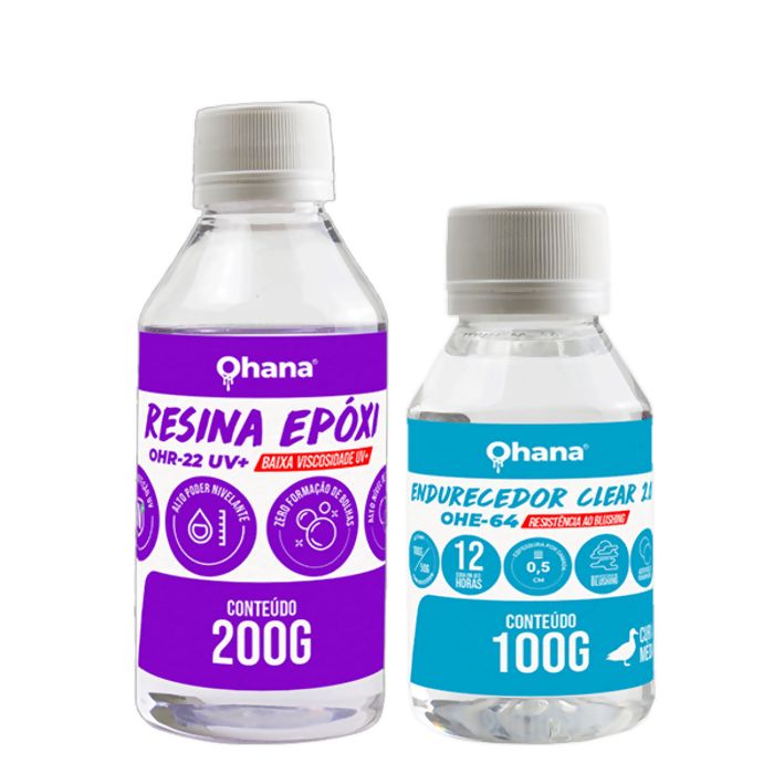 Descrição Sistema Clear 2.0 Baixa Viscosidade UV 200g Resina + 100g Endurecedor Ohana