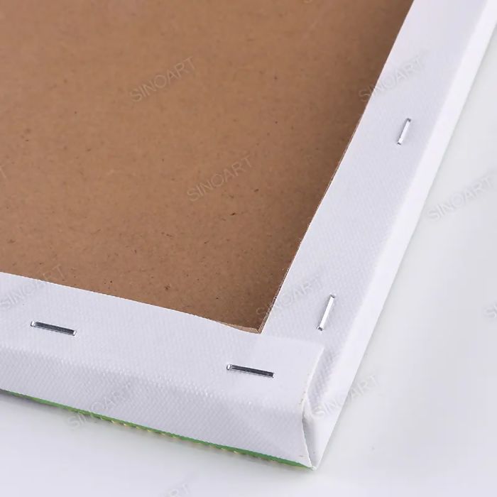Tela de algodão com **base de madeira**, preparada com camada adesiva.