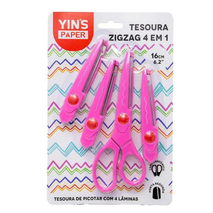 Tesoura De Picotar Zigzag 16cm 4 Em 1 Blister Yins Paper