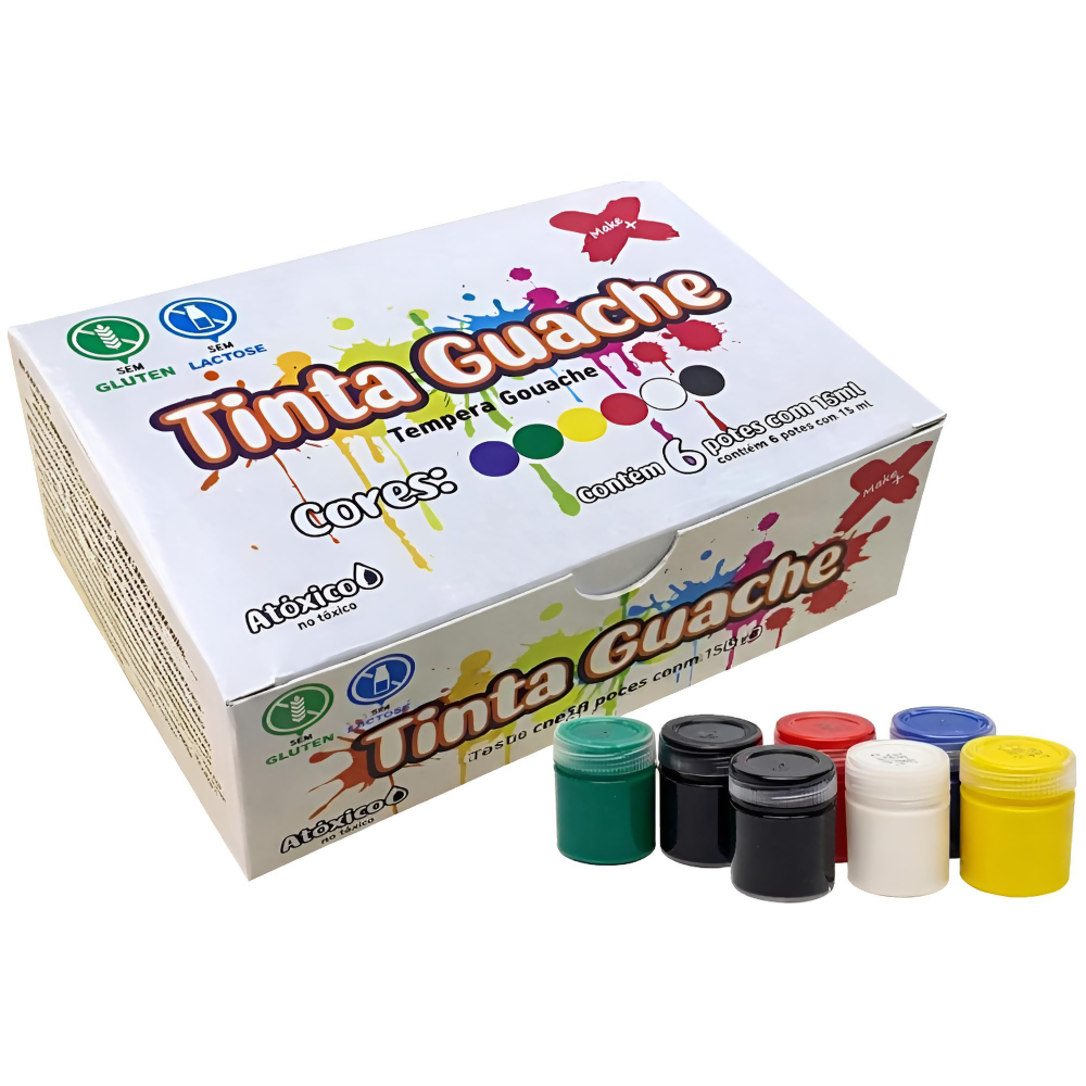 Descrição Tinta Guache 15ML 6 Cores Make+
