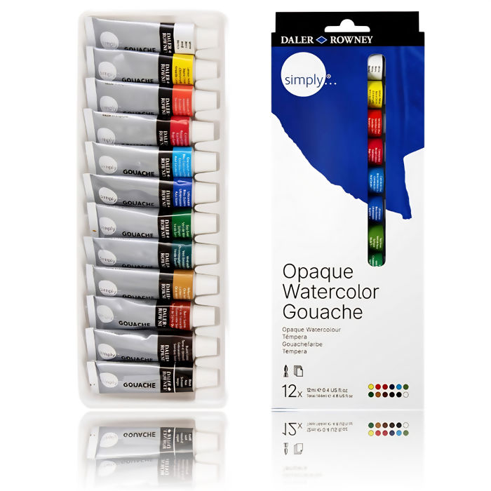 Informações Tinta Guache Simply DALER ROWNEY 12ml 12 Cores