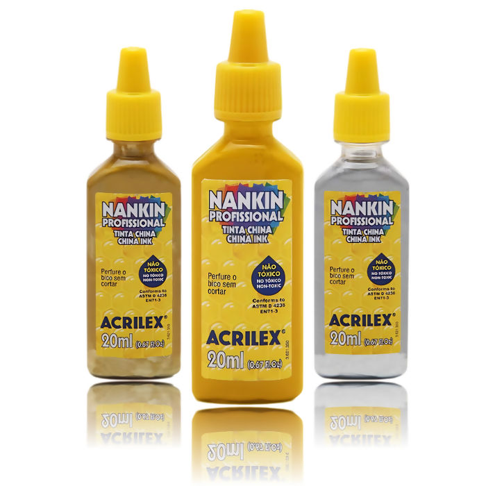 A Tinta Nankin da Acrilex é uma tinta à base de água, ideal para desenhos e ilustrações. Com uma consistência fluida, ela é amplamente utilizada por artistas, ilustradores e estudantes, oferecendo uma aplicação suave e uniforme.