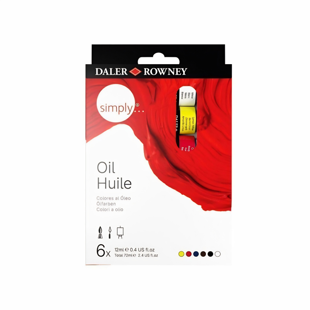 O estojo Daler-Rowney Simply Oil oferece 6 tubos de tinta a óleo de 12?ml cada, produzidos na Inglaterra por uma fabricante com mais de 240 anos de tradição.