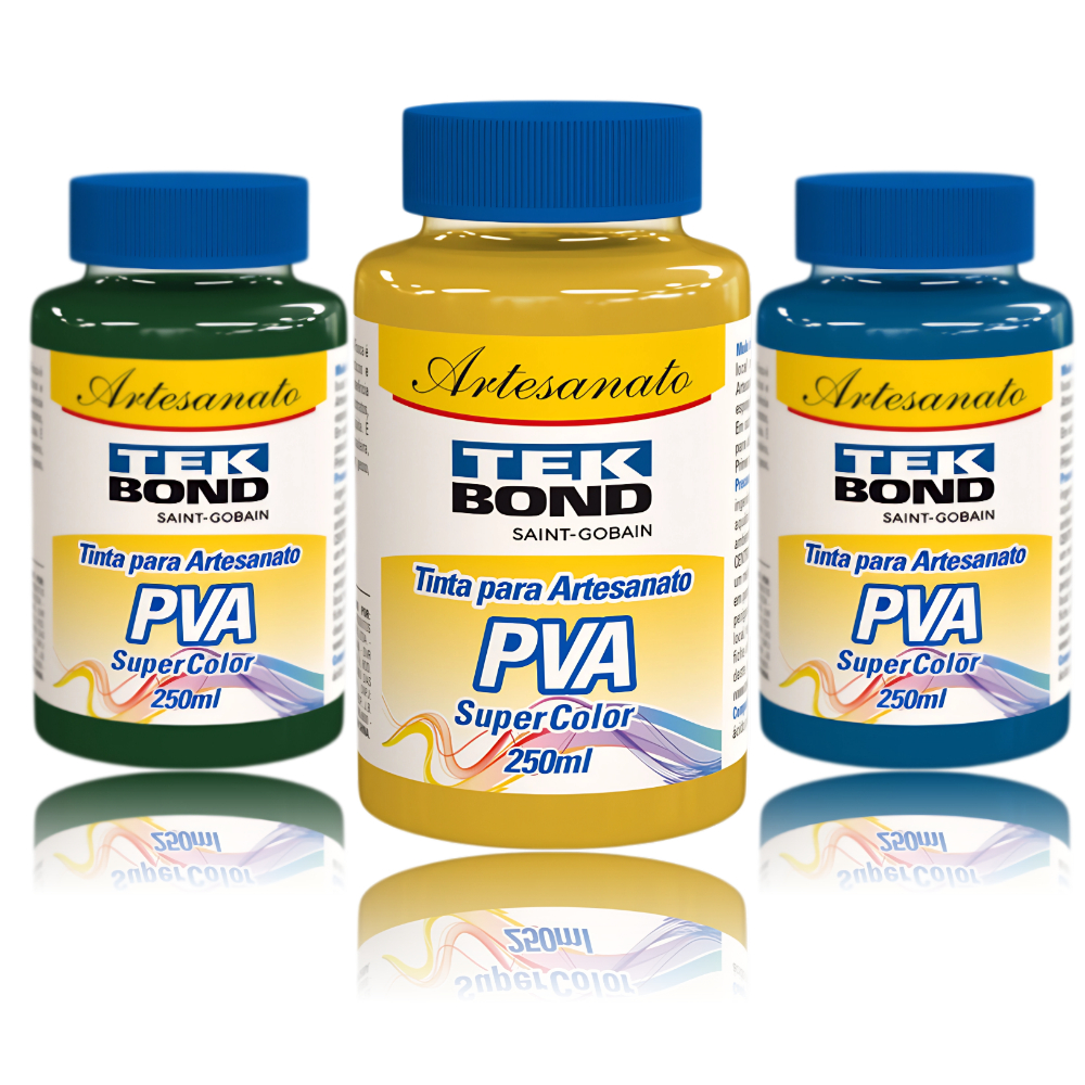 As Tintas para Artesanato PVA Super Color da Tekbond são resultado de uma combinação de componentes e testes de última geração para oferecer o que existe de melhor qualidade em pinturas artísticas e artesanais. O resultado é um elegante e diferenciado aspecto fosco. Elas vêm prontas para o uso, secam rápido, são solúveis em água, os pingos indesejáveis são fáceis de limpar, possuem uma excelente cobertura e baixo odor.